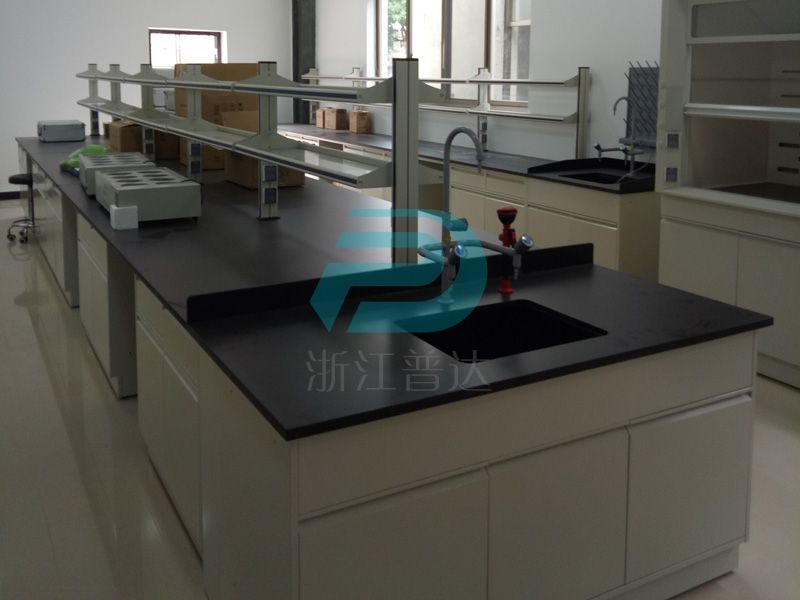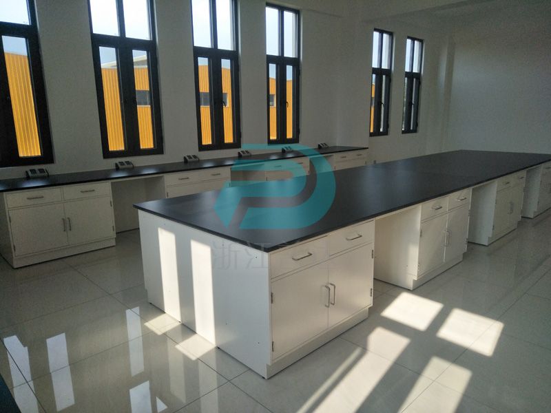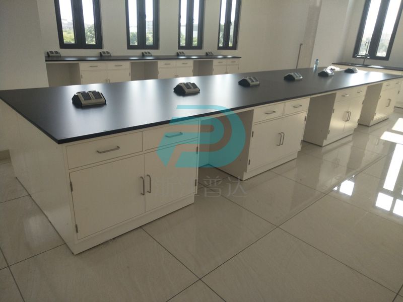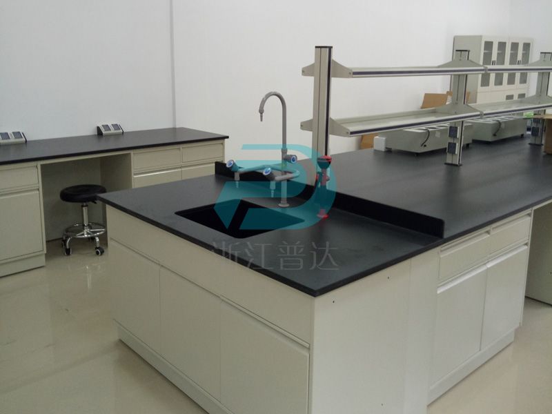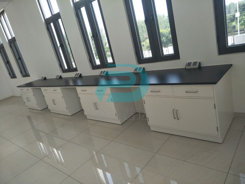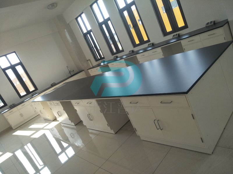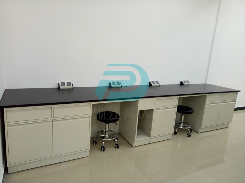 1、臺面:采用12.7mm厚實驗室專用理化板,周邊加厚至25.4mm,倒圓角處理. ,防強酸強堿,耐磨耐高溫。不含任何有毒物質,無輻射。